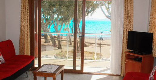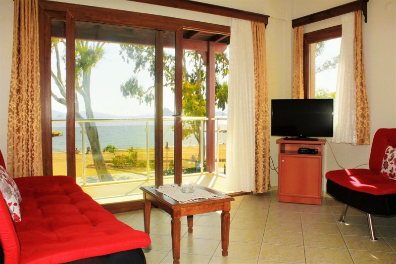 Kumsalın yanında, Restoranlara 40m, Süpermarkete 60m, Bodrum'a 18km, Havalimanına 55km, Turgutreis'in merkezinde