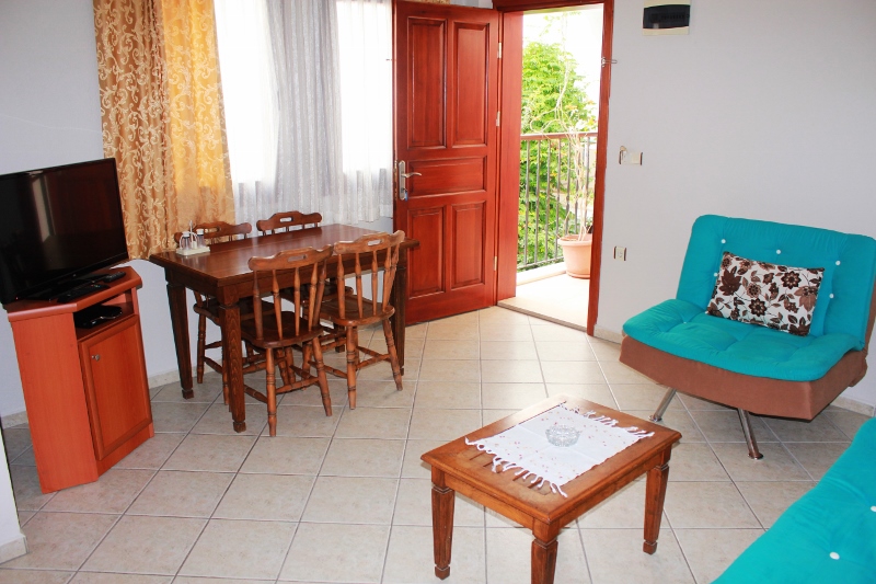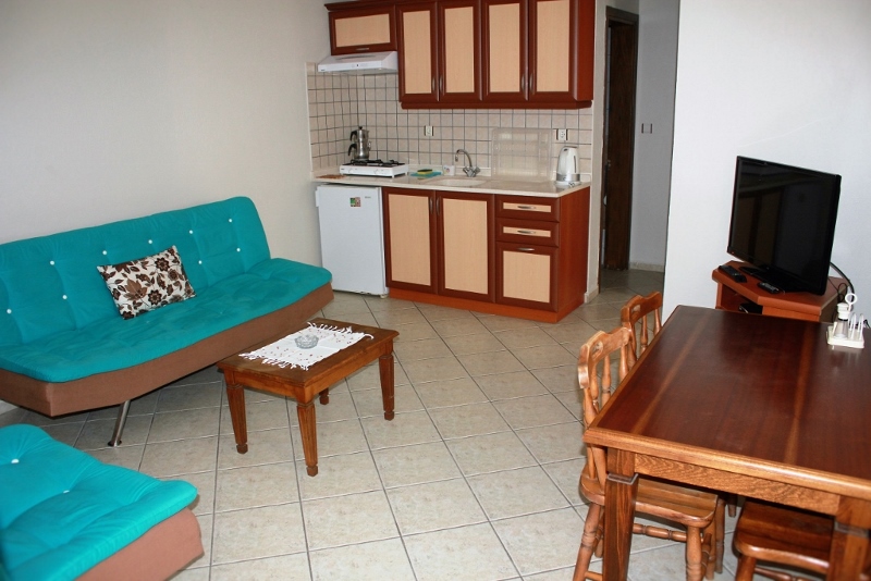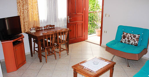 LCD TV, iki kişilik koltuk, Balkon, Amerikan Mutfak